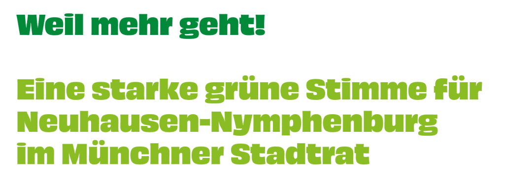 Am 8. März besteht also die Möglichkeit eine starke grüne Stimme für Neuhausen-Nymphenburg in den neuen Münchner Stadtrat zu wählen!